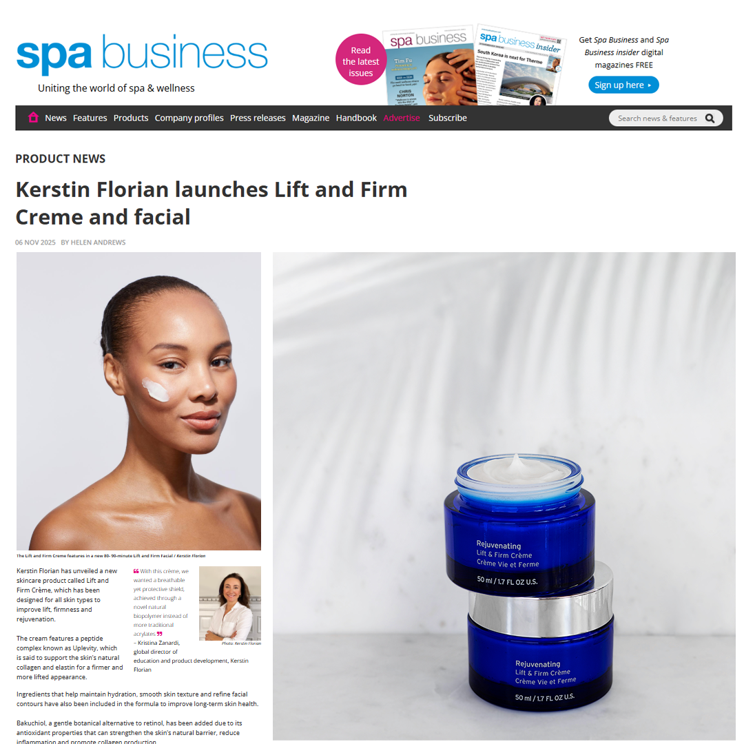 “Kerstin Florian has unveiled a new skincare product called Lift and Firm Crème, which has been designed for all skin types to improve lift, firmness and rejuvenation. The new Facial is designed to address tone, firmness and prevention of premature ageing. The crème has a fantastic scent of rose and will give that silky-smooth finish."