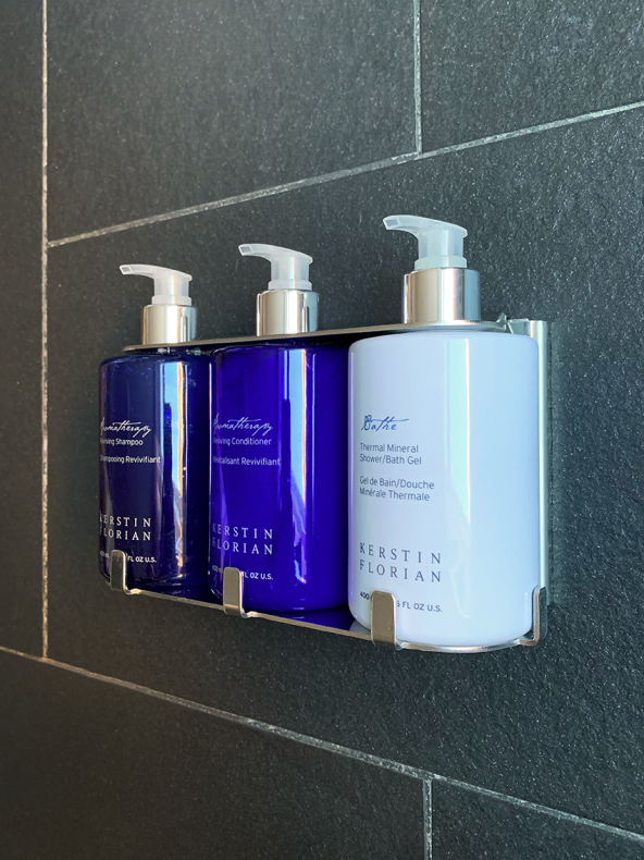 Triple holdere til dispensering 400 ml, rustfrit stål. Tilpasset flaskedesign på 400 ml.
