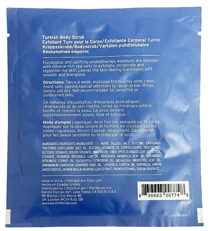 Havsalt, eucalyptus, anis, lavendel og basilikumolie har vist sig at være overordentligt effektiv til at opkvikke hele kroppen. Blødgørende og cremet konsistens. Denne dybderensende eksfoliator efterlader huden glat og hydreret.